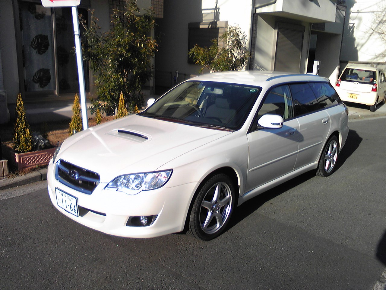 写真の通り、白のレガシィ ツーリング ワゴンに乗ってます。